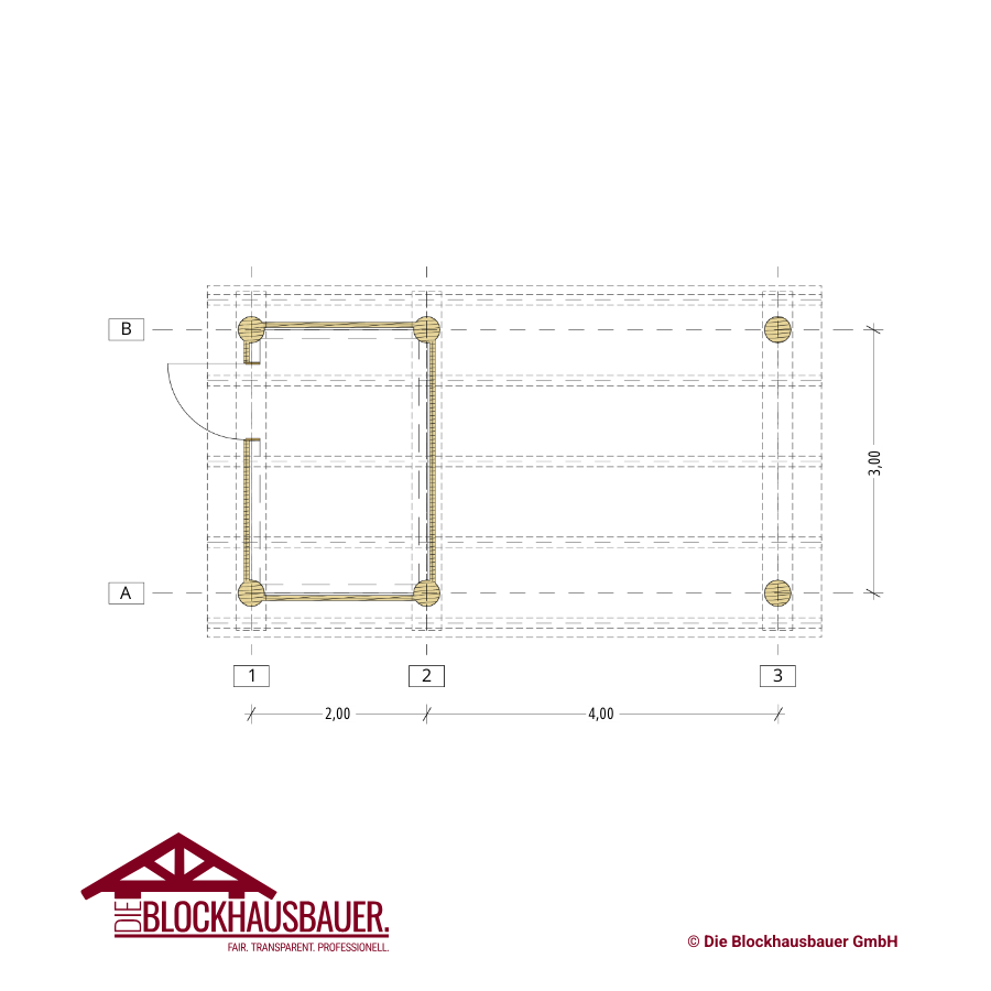 Wie bei all unseren Modellen setzen wir auch beim Spruce Shelter Blockhaus-Carport auf massive Naturstämme als tragende Elemente. Die Konstruktion besteht aus:
