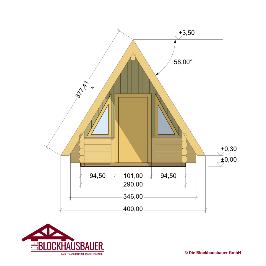 Die Giebel sind in hochwertiger Holzrahmenbauweise gefertigt und mit einer 80mm Holzweichfaserdämmung isoliert.
