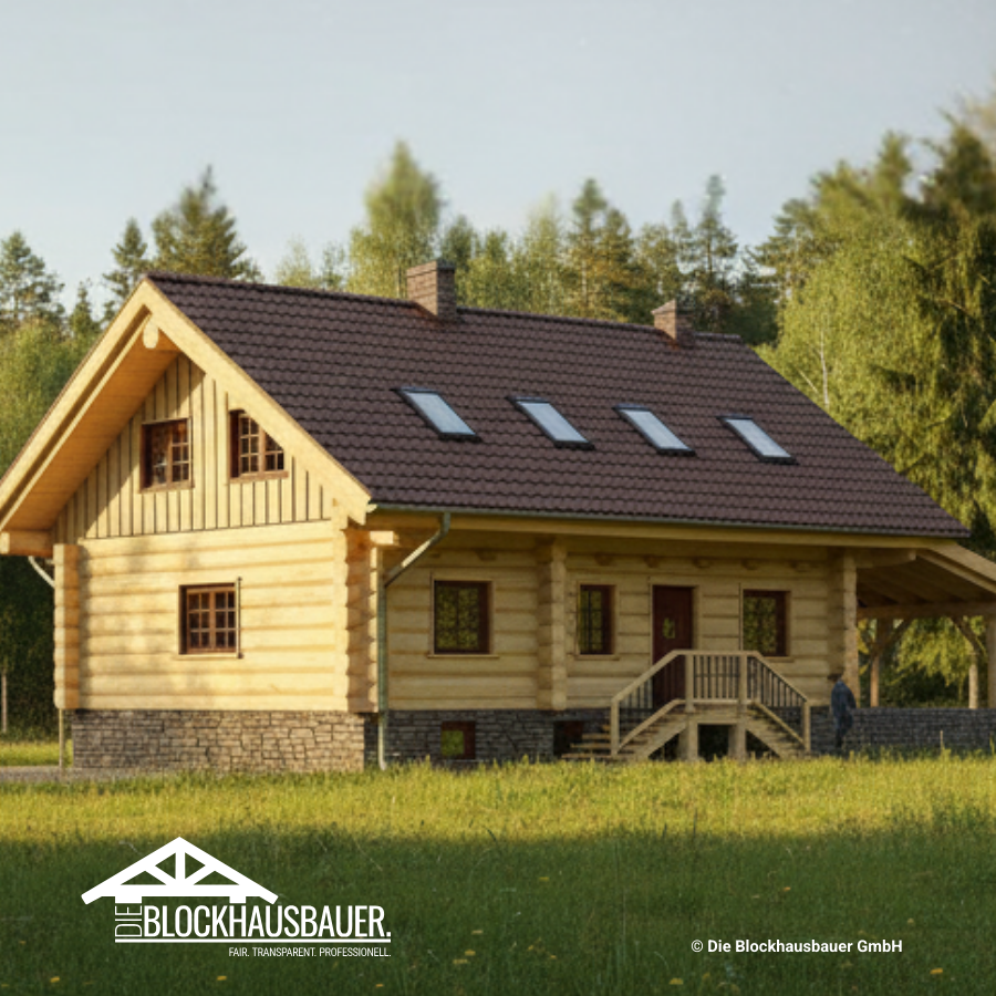 Die Farbe der Fenster und Türen, die Gestaltung der Dacheindeckung, Kamin ja oder nein, innenseitig besäumte Blockwände, Anzahl und Position von Steckdosen und Lichtschaltern und viele weitere Details können zum Naturstammhaus individuell abgesprochen werden.