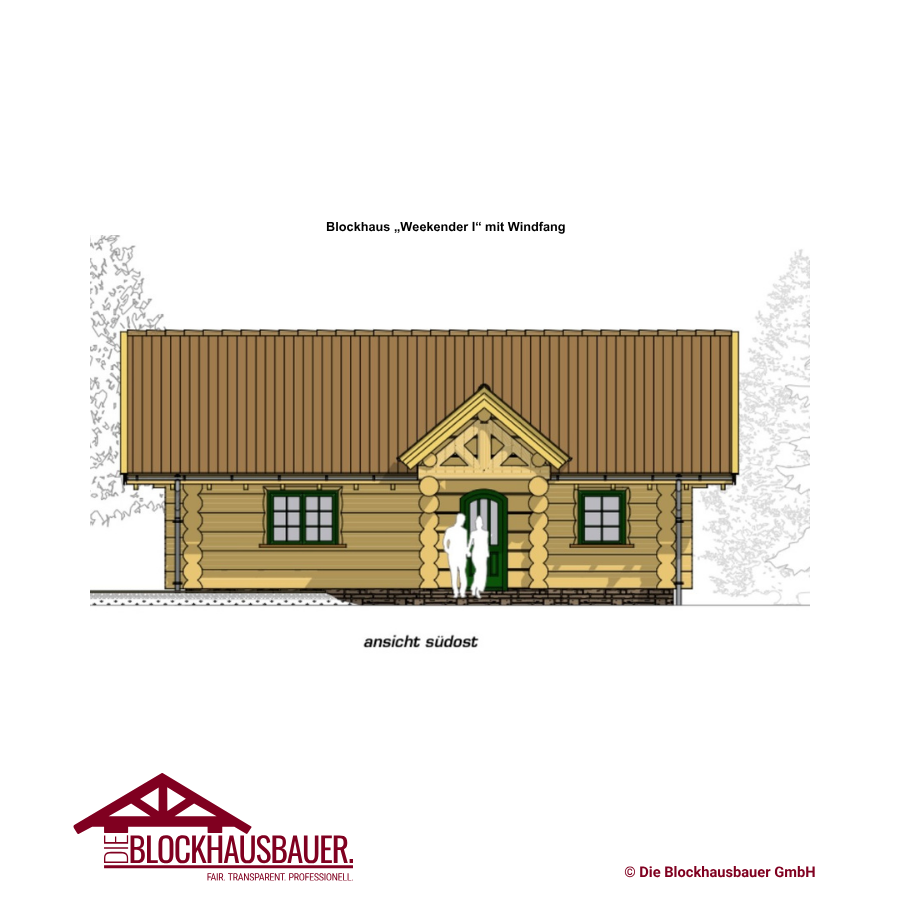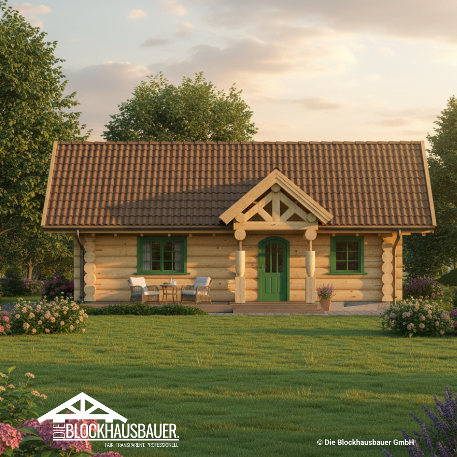 Entdecken Sie das kanadische Blockhaus "Weekender I" mit einer Grundfläche von 6x10m. Optional können Sie einen Windfang hinzubuchen.