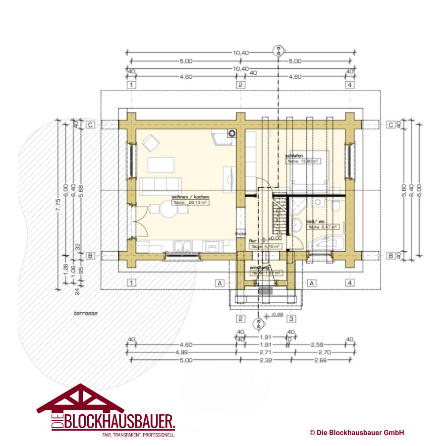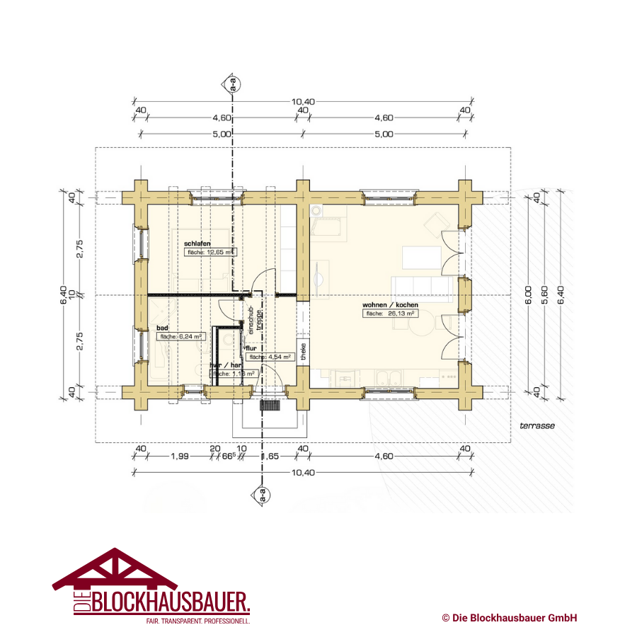 - Grundfläche: 10,40m x 6,40m