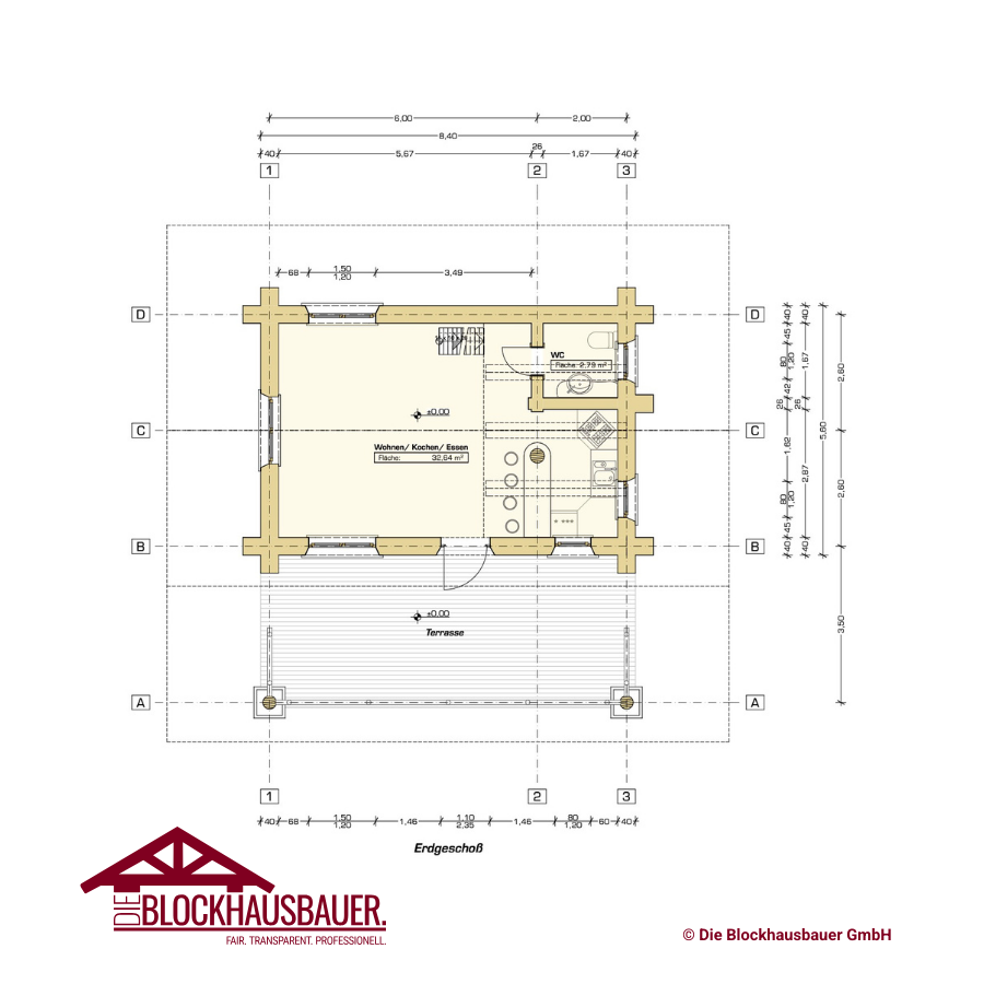 Entdecken Sie das einzigartige Naturstammhaus "Weekender III", das mit seiner kleinen Größe von 8,0m x 5,20m Achsmaß und einer nutzbaren Fläche von 35,4qm im EG und 14,6qm Schlafboden im OG beeindruckt. Trotz seiner kompakten Größe bietet dieses Blockhaus viel Raum für Wohnen, Kochen und Essen sowie ein kleines Bad. Die Zwischendecke zur Nutzung als Schlafboden ist optional. Sie kann auch entfallen oder vollflächig gebaut werden.