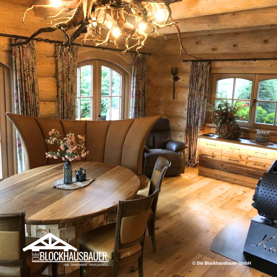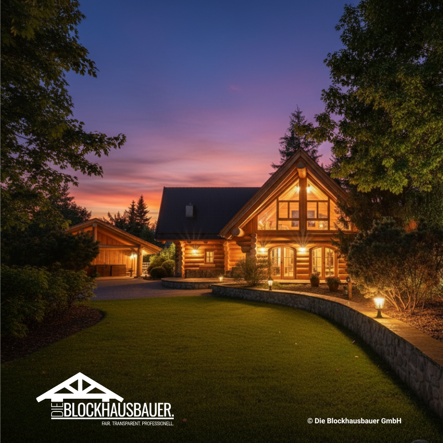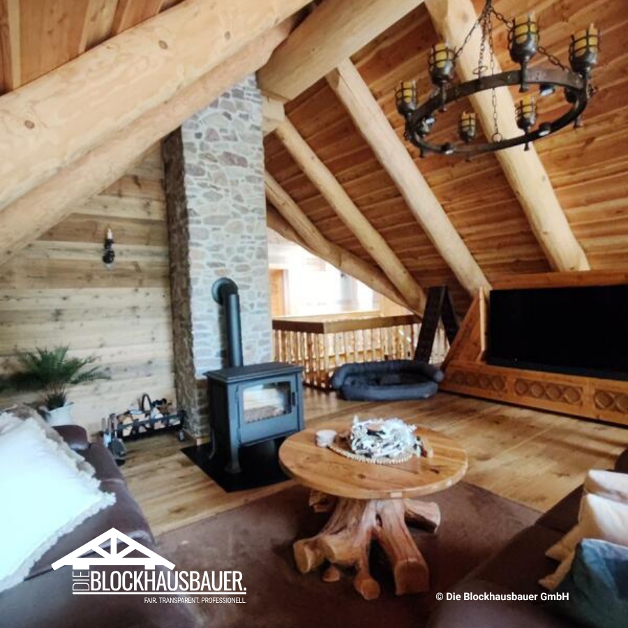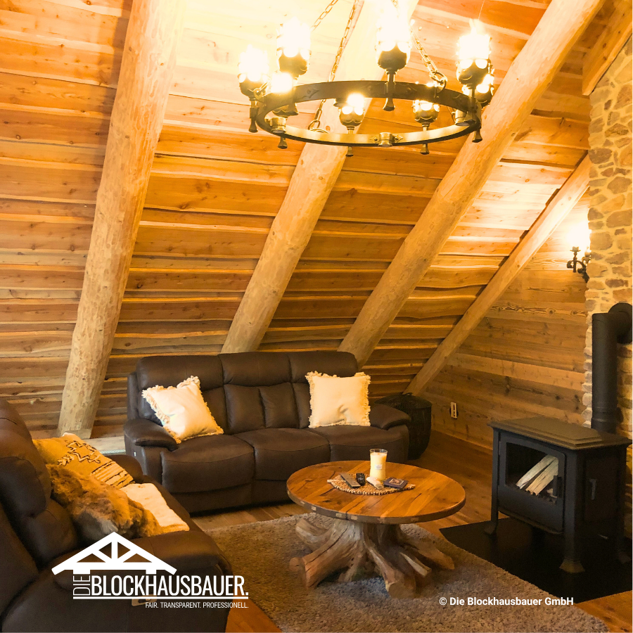 Eleganter Blockhaustraum auf 1,5 Etagen und rund 189qm Netto - Wohnfläche. Unser Blockhaus "Whitehorse Lodge" vereint großzügiges Wohnen und Funktionalität in einem Grundriss in "L-Form".