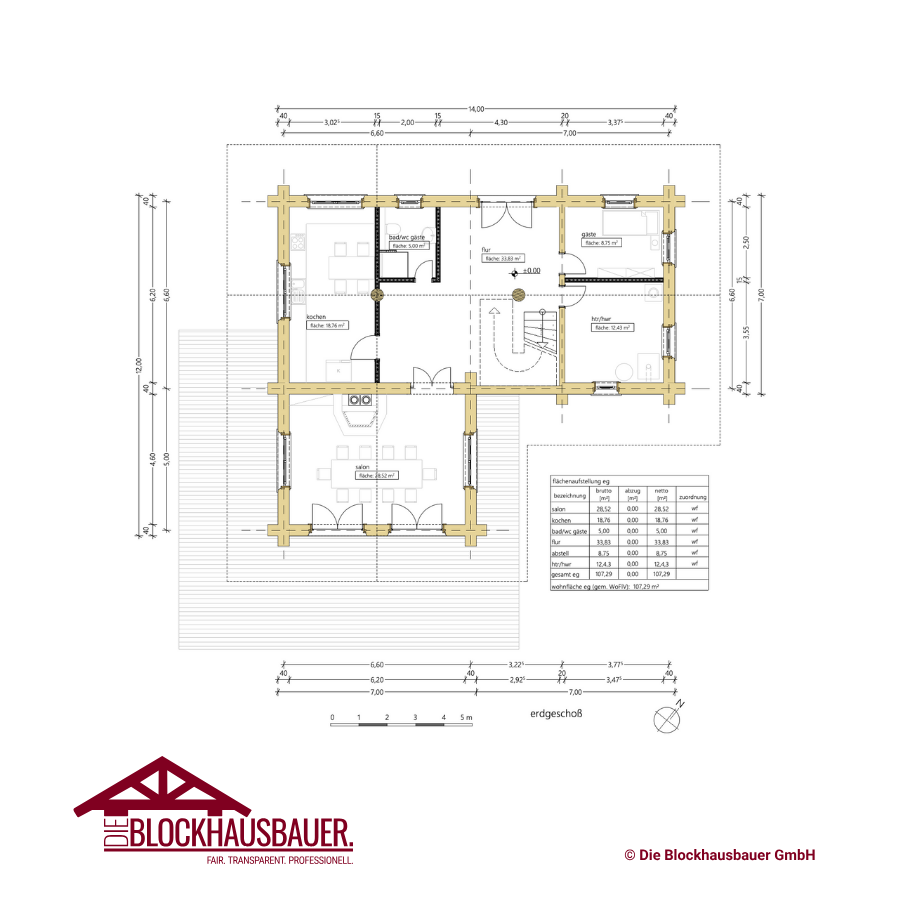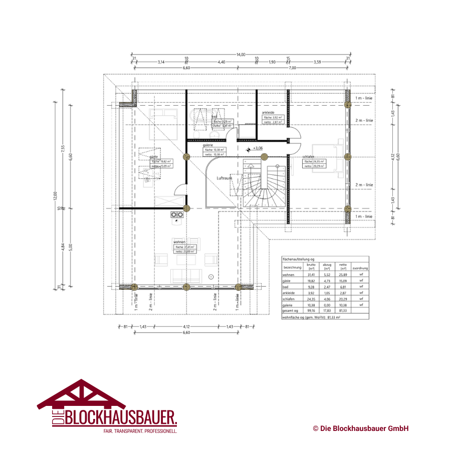 - Grundfläche: 14,00m x 12,00m in "L-Form"