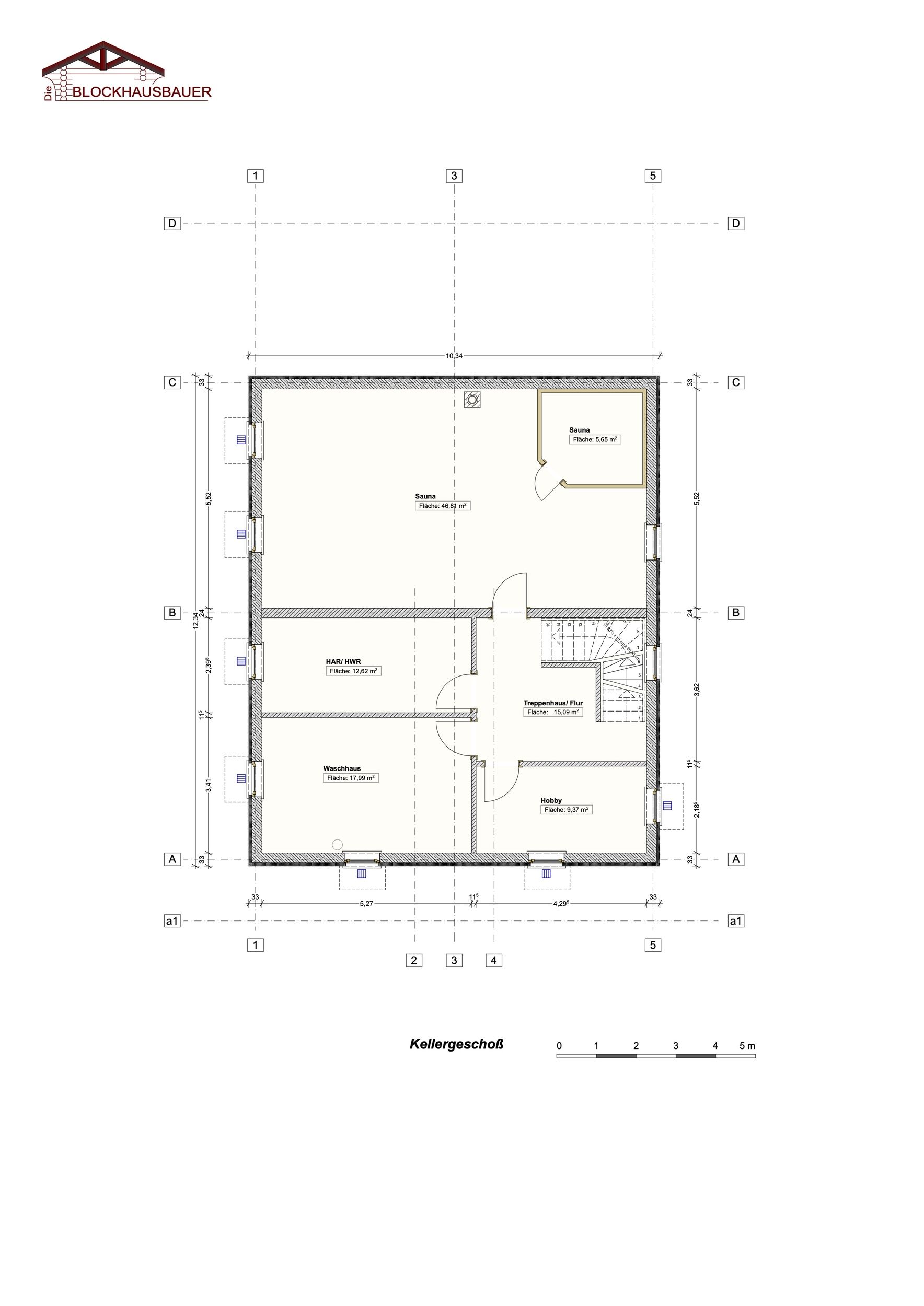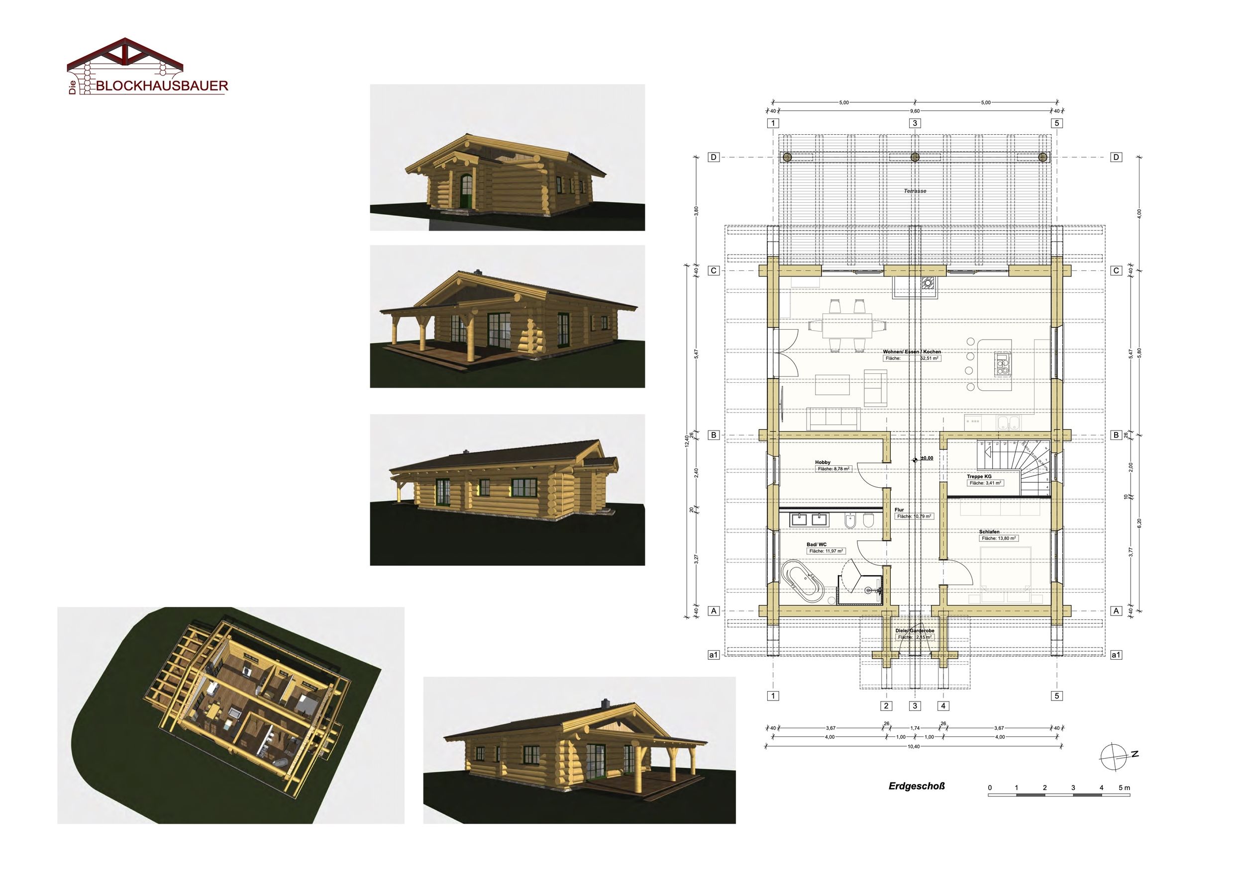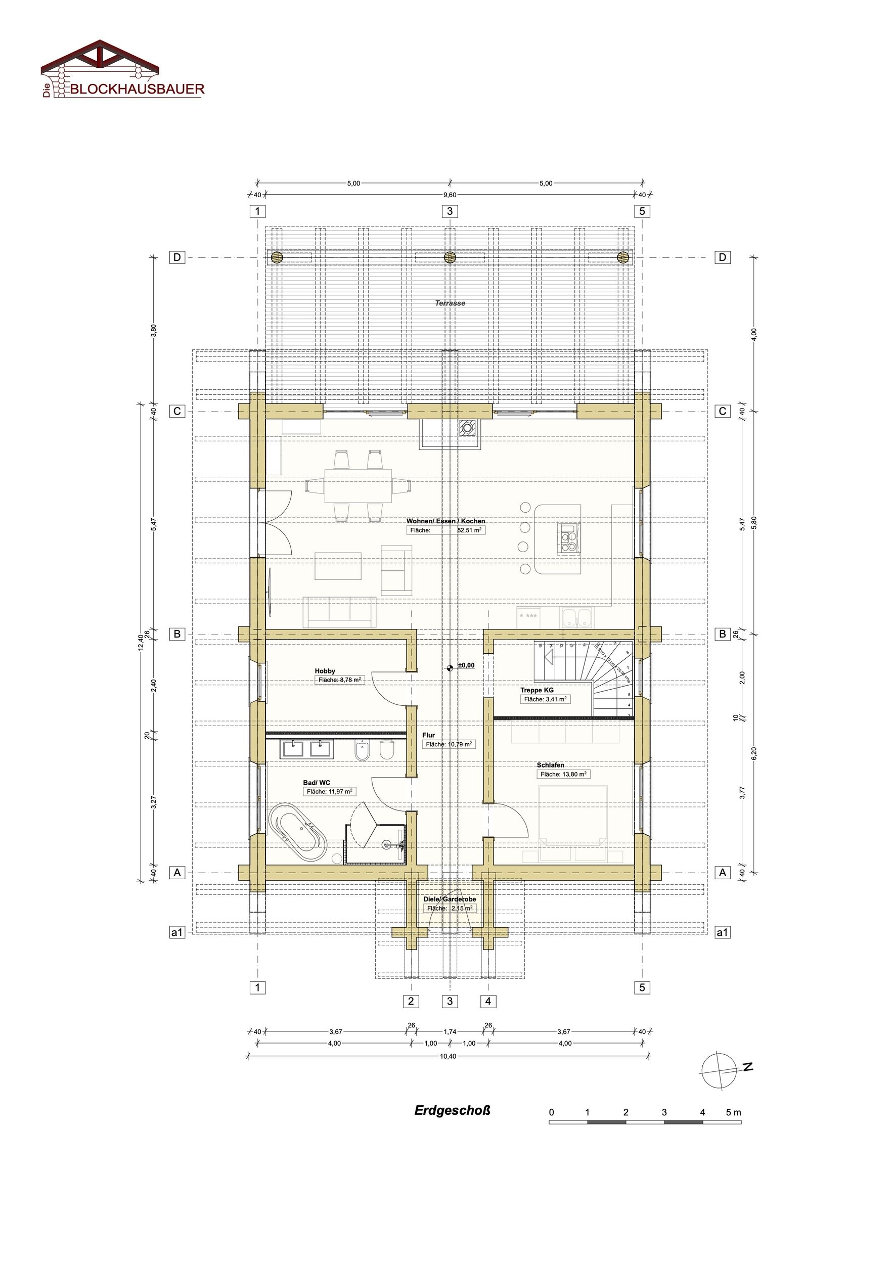 - Grundfläche: 12,40m x 10,40m (alle Achsmaße individuell anpassbar)