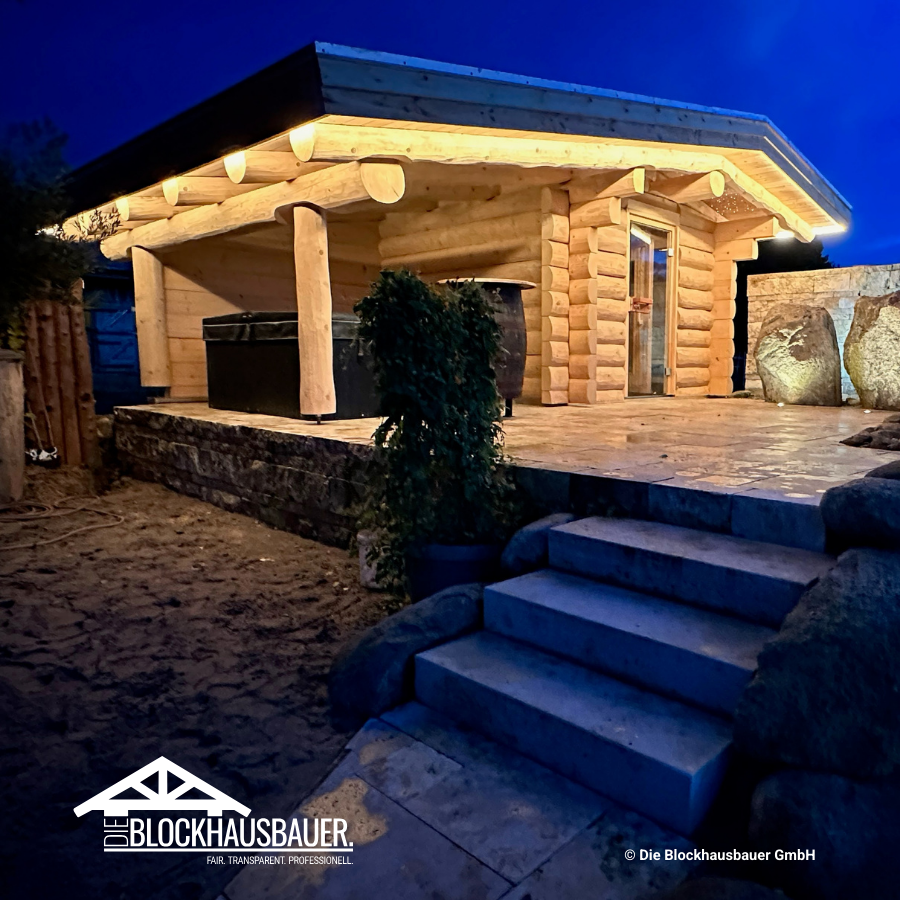 Blockhaussauna & massive Gartensauna: Ihr privates Wellness-Resort