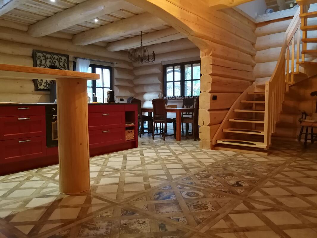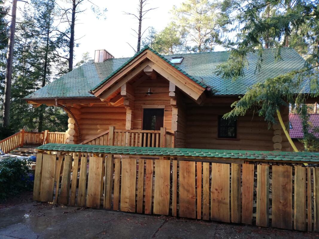 - Pfetten, Säulen, Deckenbalken in Naturstamm
