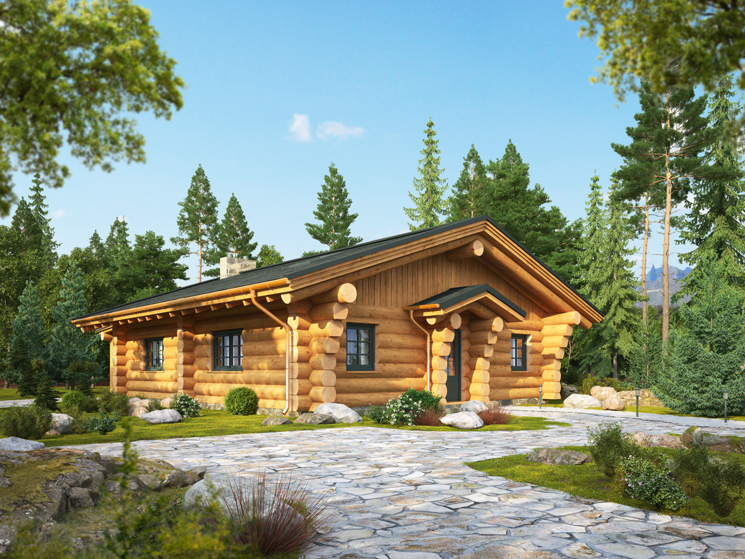 Naturstammhaus im Bungalowstil. 105qm Wohnfläche ebenerdig.