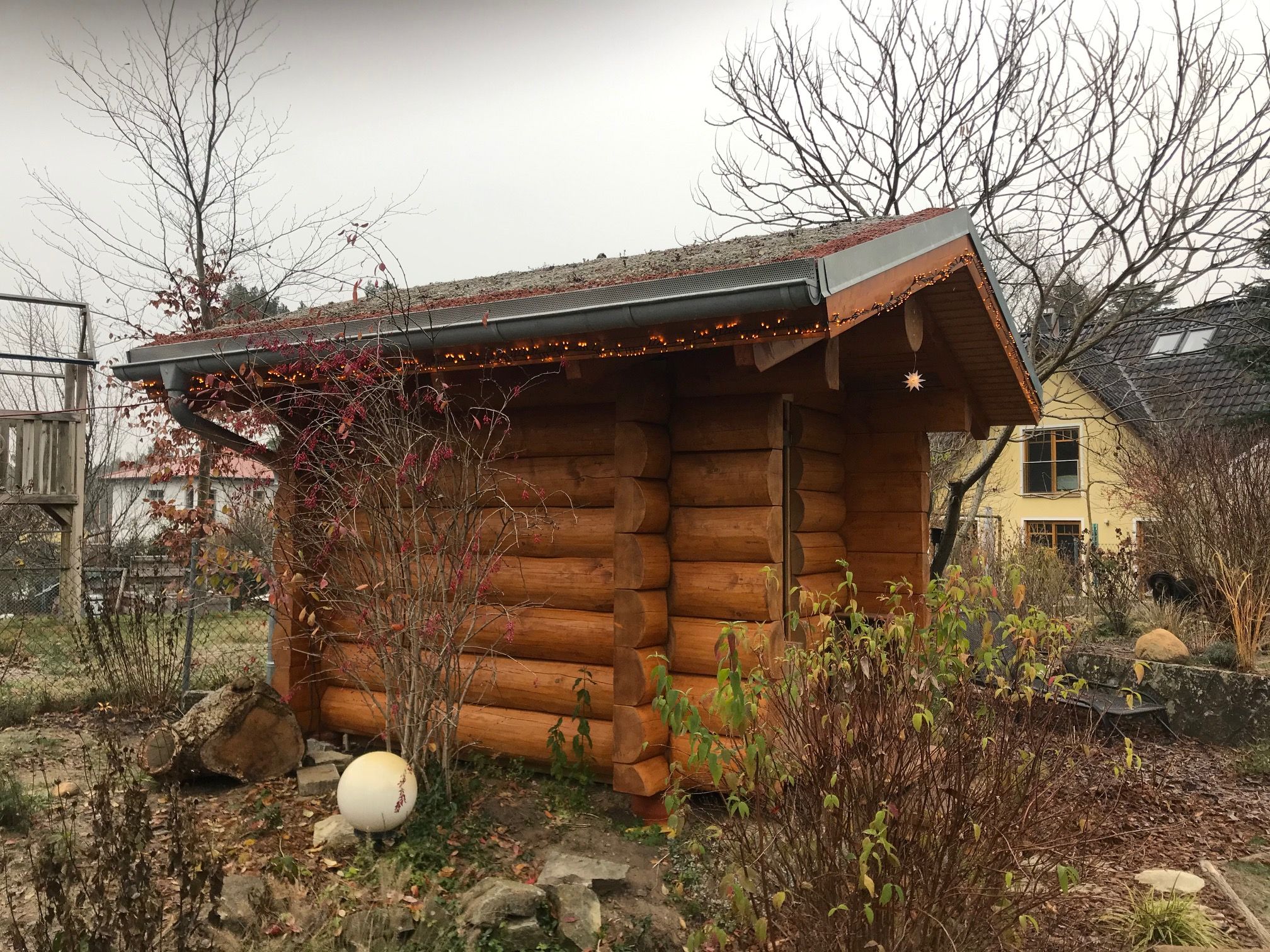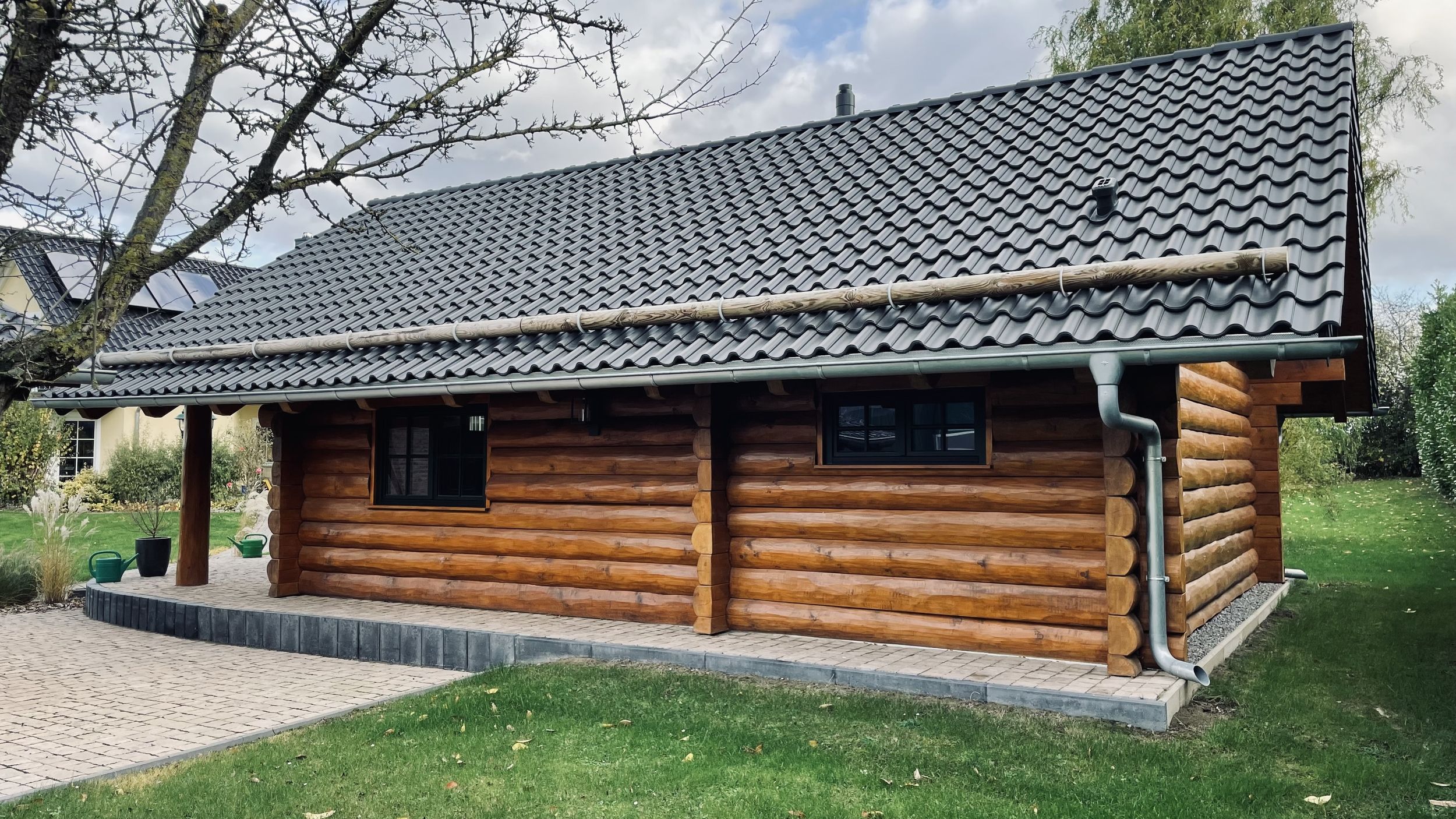- Authentische Naturstamm-Optik: Von außen kaum von einem klassischen Blockhaus zu unterscheiden.