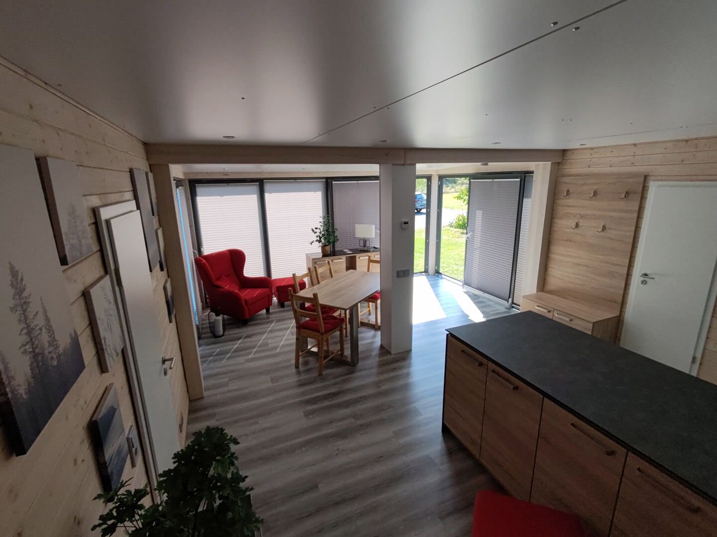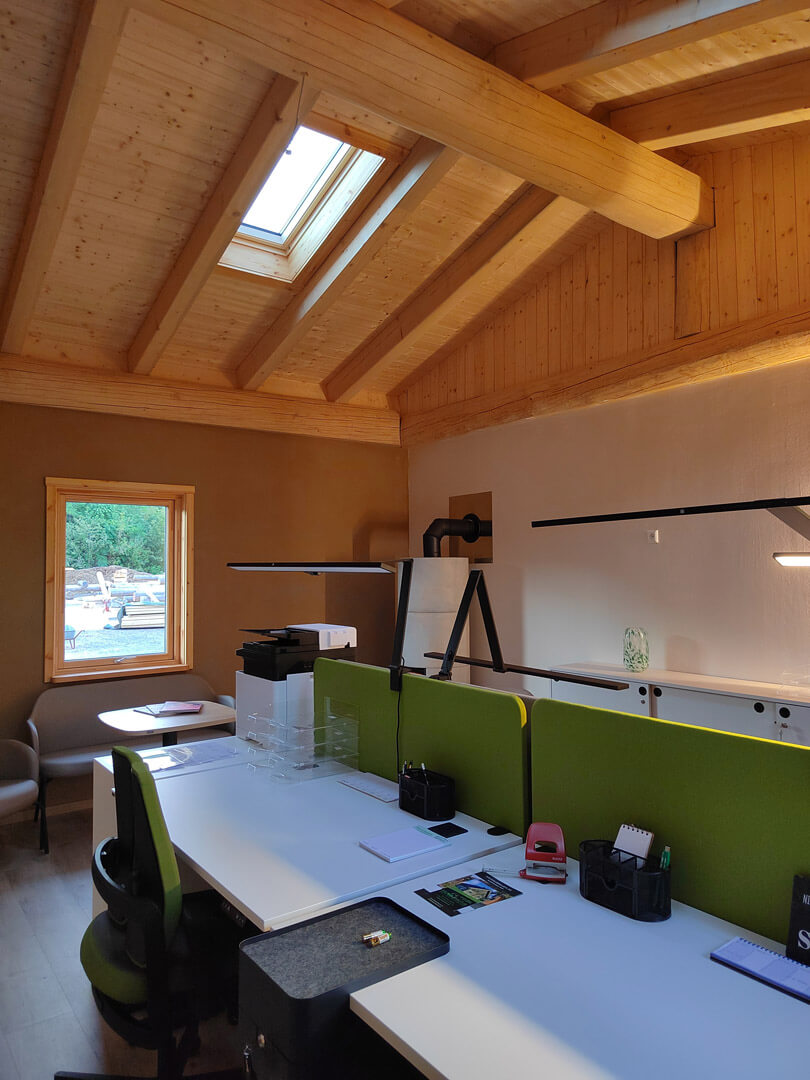 Im Innenbereich sind Ihrer Kreativität keine Grenzen gesetzt: Lehmbauplatten mit Lehmputz, Gipskartonplatten (gespachtelt und farblich gestaltet), Tapeten, Fliesen oder verschiedenste Holzverkleidungen – alles ist möglich! So entsteht Ihr ganz persönliches Traumhaus mit individueller Note.