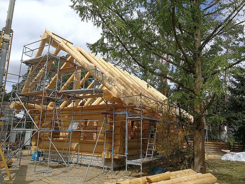 Das in beiden Presseartikeln abgelichtete Naturstammhaus haben wir zwischenzeitlich fertig gestellt und sind aktuell in der Montage beim Kunden. Die Fotos dazu sind ebenfalls beigefügt. Selbstverständlich kommen noch weitere Fotos nach fertig abgeschlossener Montage hinzu.