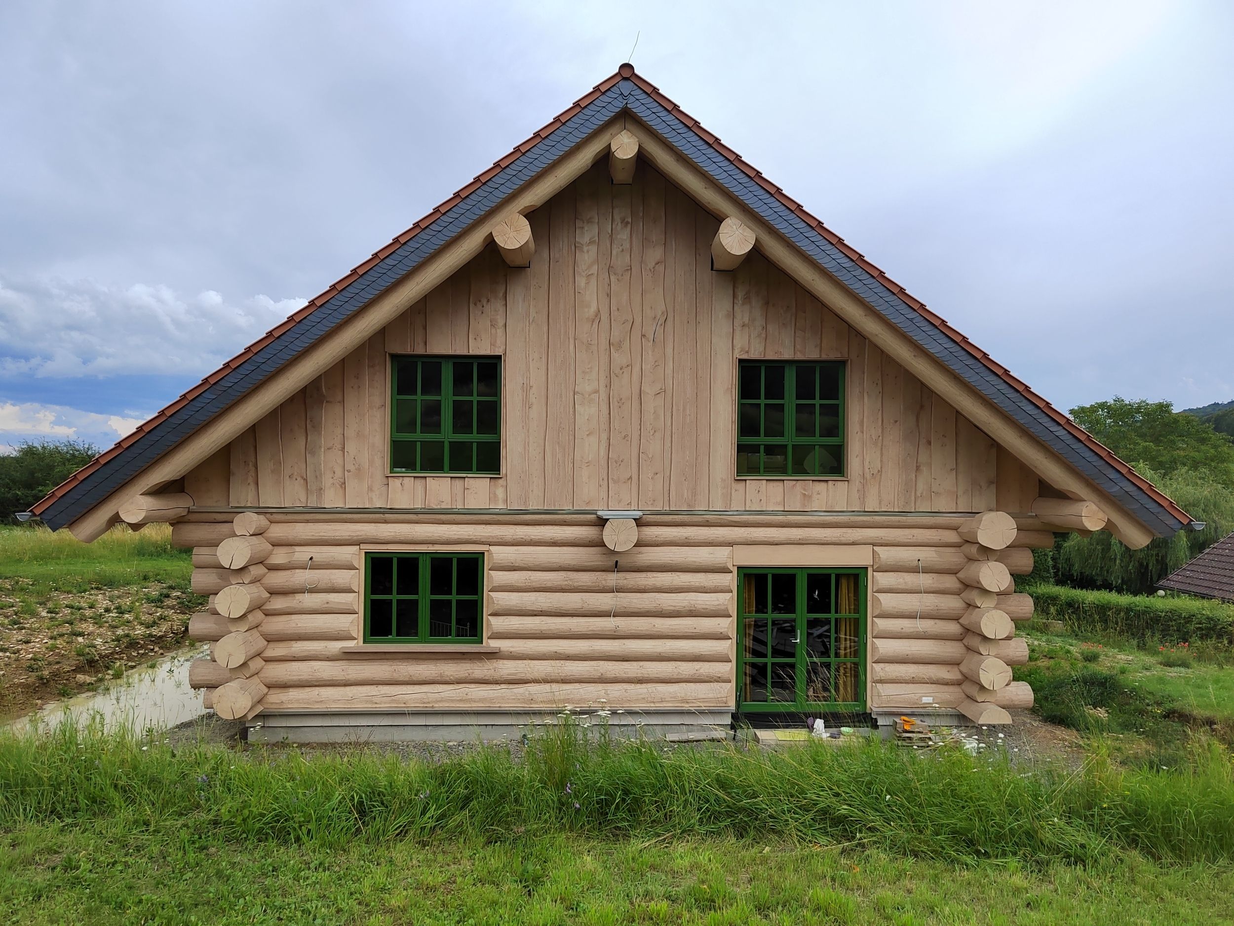 - Im Kontrast zum hellen Splintholz bringt dies die Struktur einer Blockwand besonders edel zur Geltung.