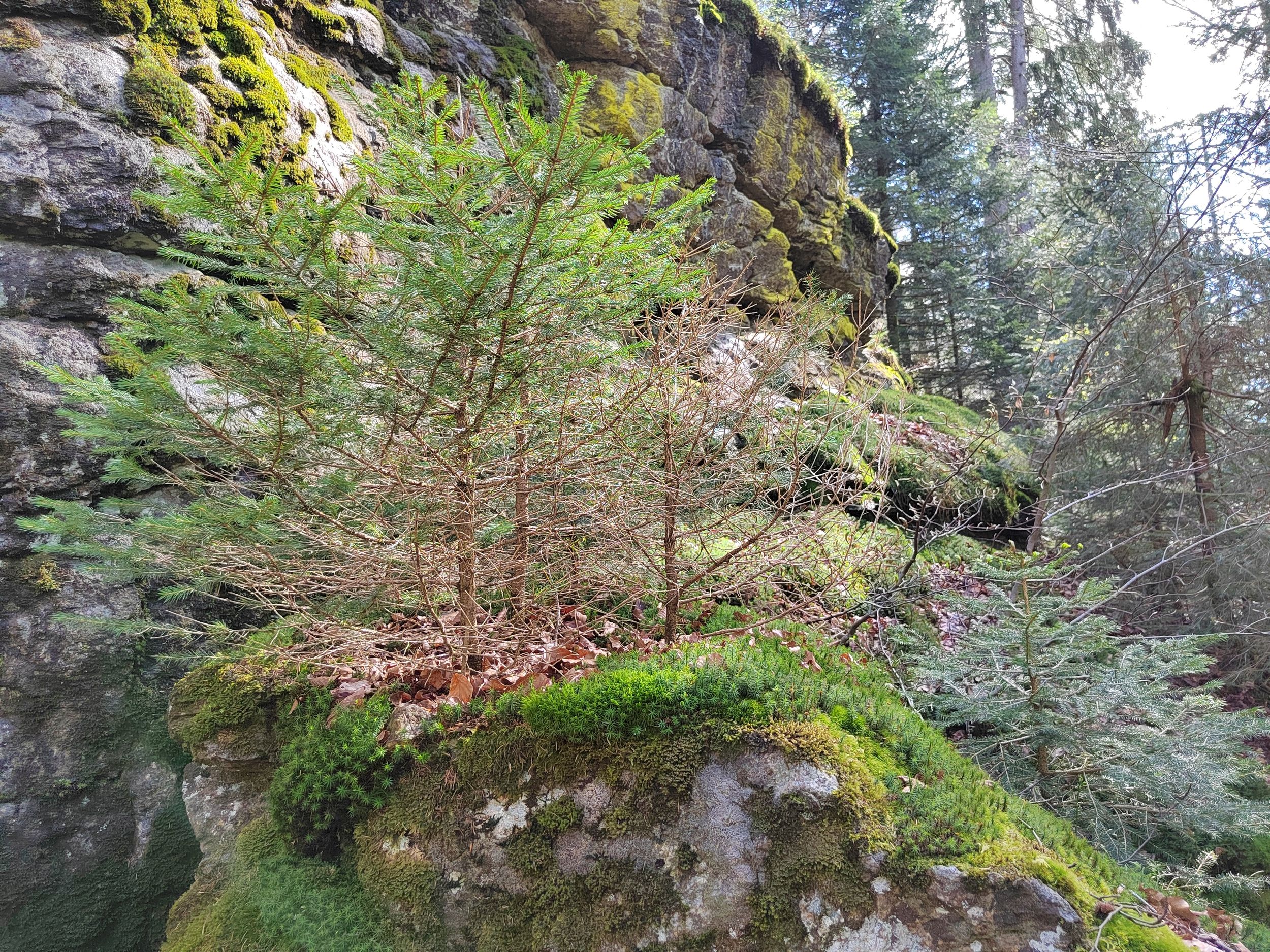 - Säbelwuchs: Da Lärchen oft an Hanglagen wachsen, bilden sie häufig einen sogenannten „Säbelwuchs“ aus – der Stamm wächst unten zunächst krumm, bevor er sich senkrecht zum Licht streckt.